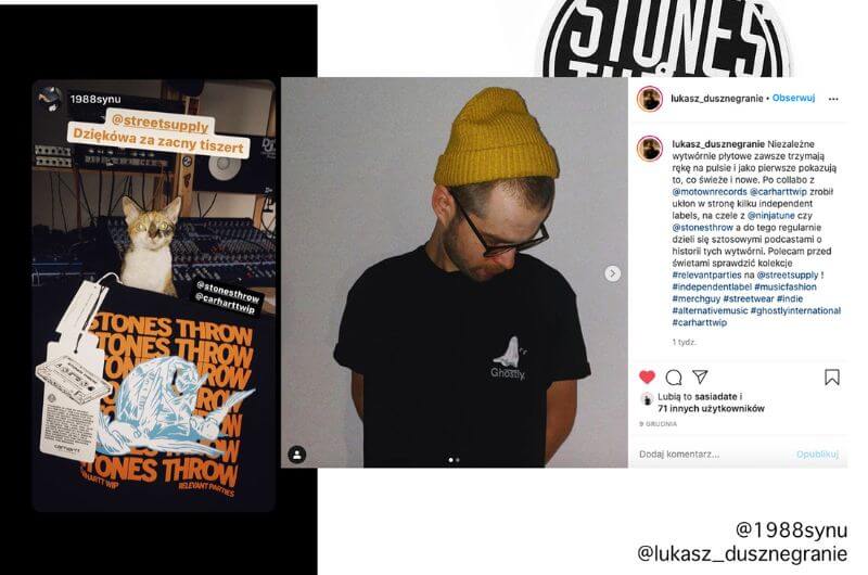 - Utworzenie i koordynacja działań social mediowych (który artysta, kiedy ma udostępnić treści nawiązujące do wspólnej kolekcji, tym samym budując hype wokół limitowanego merchu).